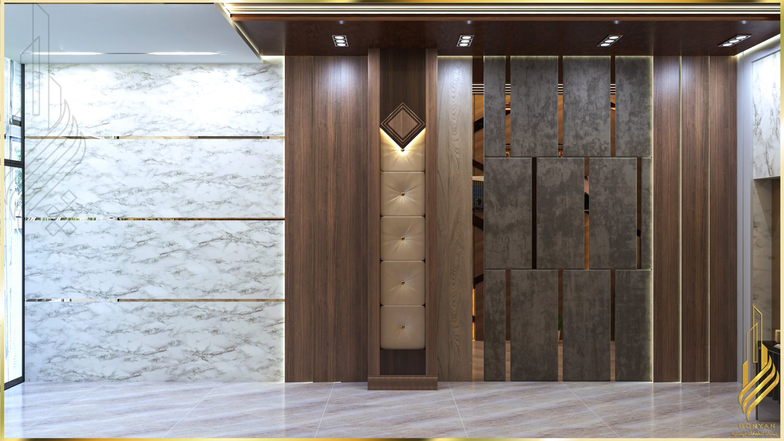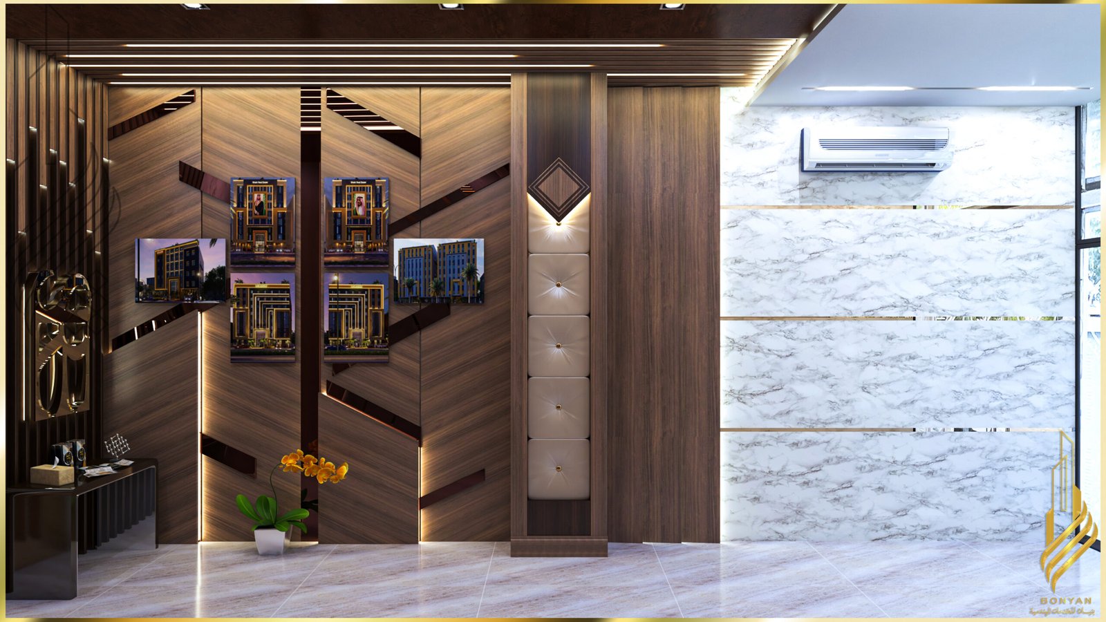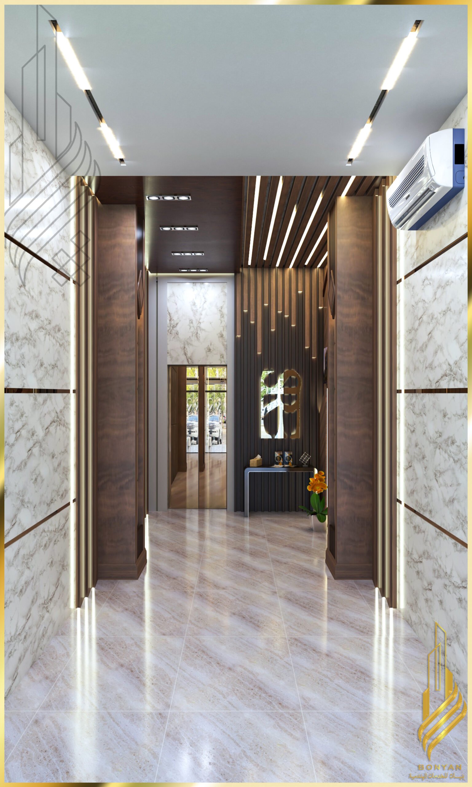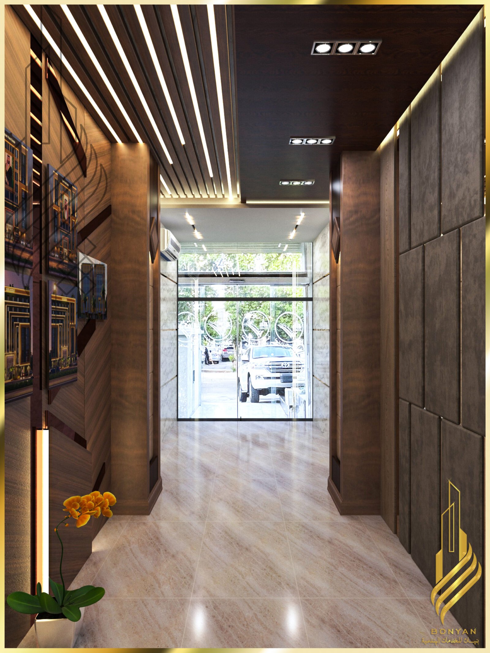تصميم داخلي ثري دي لمدخل شركة عقارية