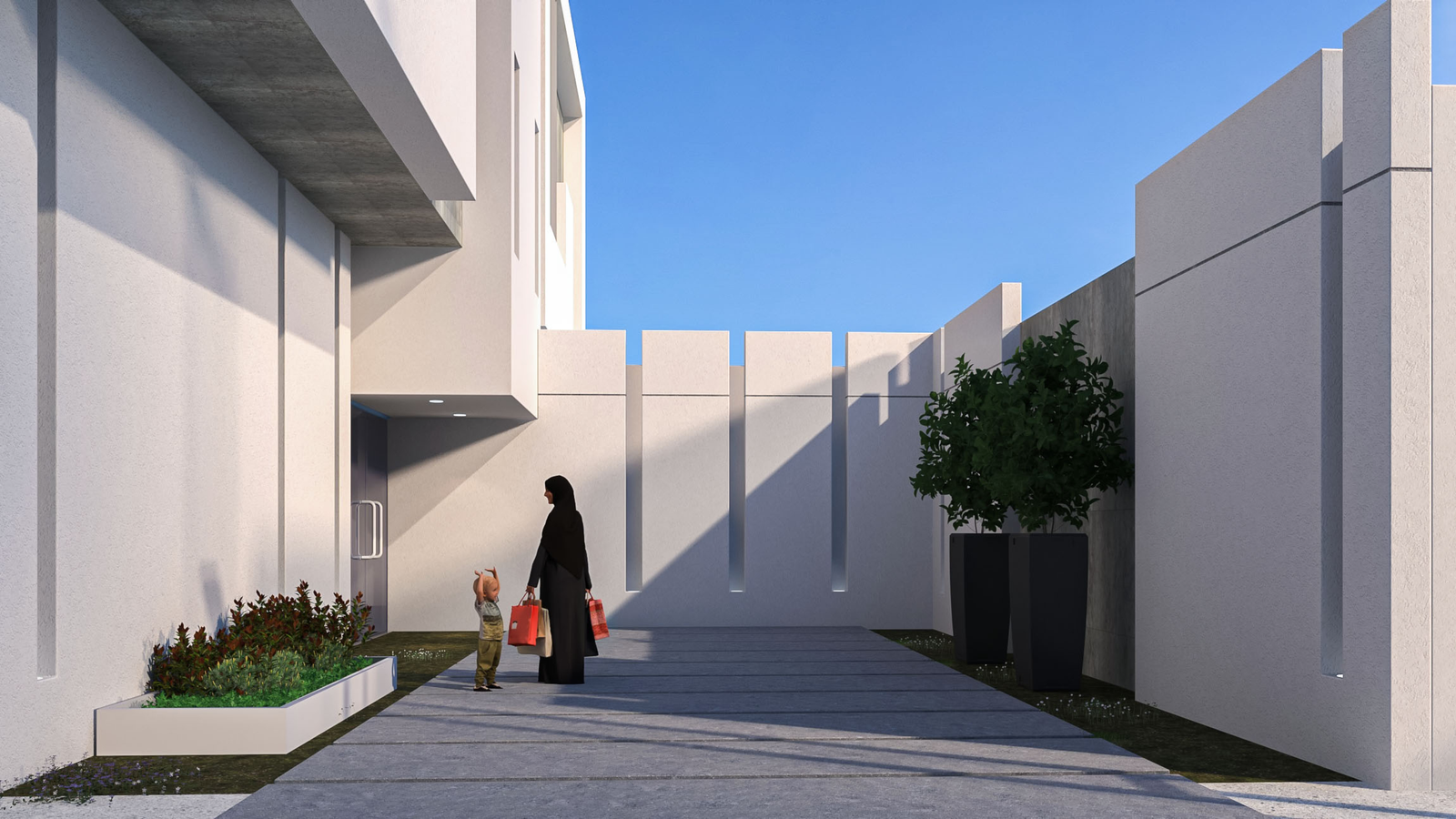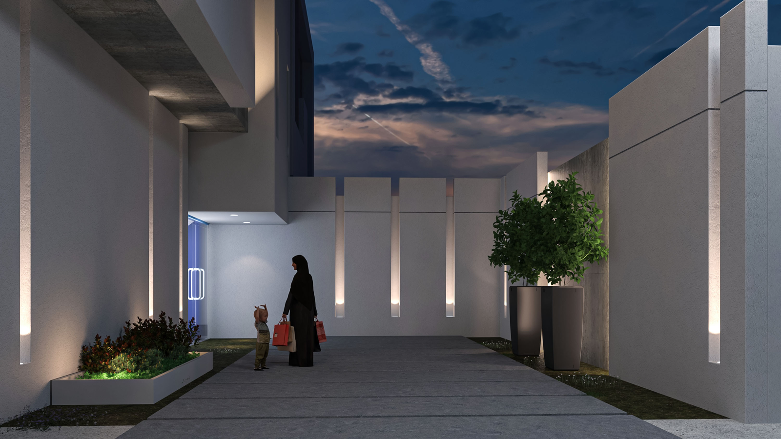 تصميم معماري لاندسكيب لتمهيد مدخل سكني تجاري